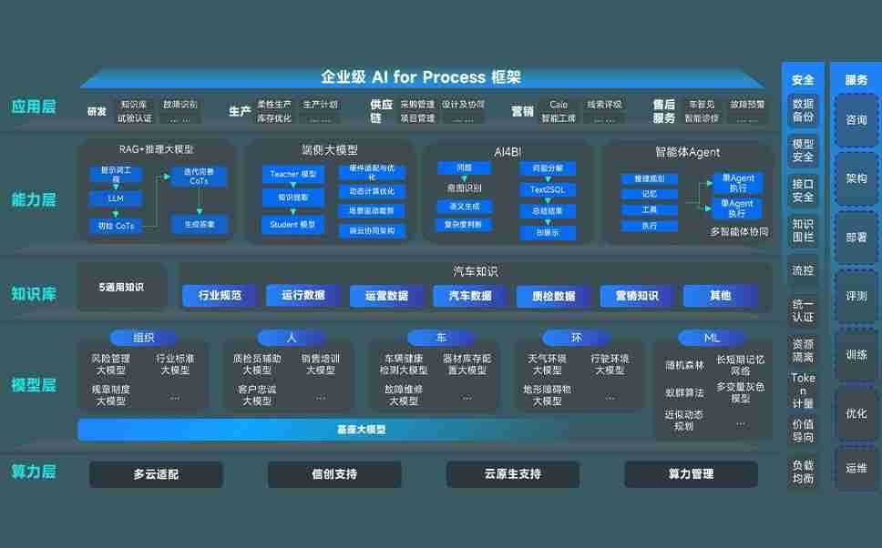 GOPAY问学智车解决方案是一套基于AI技术的汽车行业智能化系统,,,,覆盖从底层算力到顶层AI应用的全栈方案。。方案由算力层、、、模型层和应用层组成:算力层,,方案支持多种一体机配置,,具备云端灵活部署、、多云适配以及动态优化计算资源的能力;模型层,,GOPAY问学平台版提供了企业级AI应用一站式构建与管理平台,,支持基于后训练强化技术的汽车企业专属模型的训练、、评测和运营;应用层,,,,GOPAY问学DeepSeek版提供包括超级员工、、、、智能招采、、智能营销、、智能客服、、、、AI for BI等一系列解决方案,,,,可助力汽车行业实现数字化转型,,,让管理更智能、、、响应更敏捷。。。。